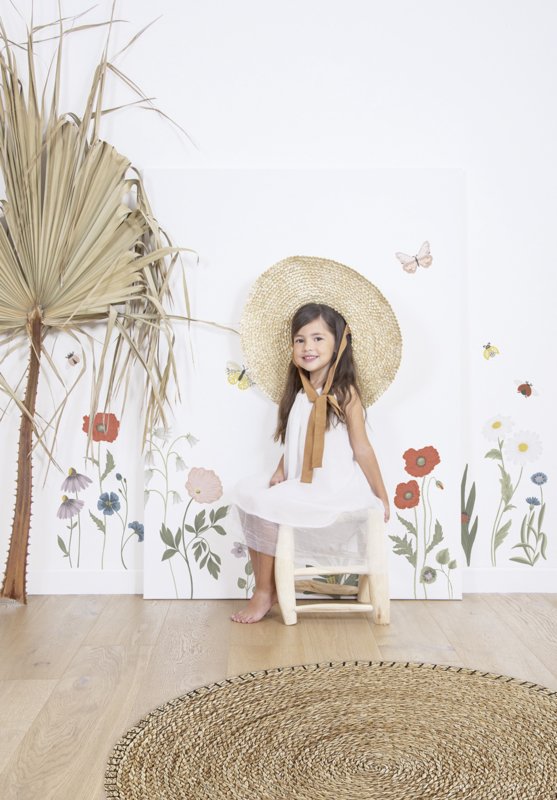 De prachtige kleurrijke bloemen serie Countryside van het merk Lilipinso. De vrolijke bloemen vind je terug op de muurstickers, behang en posters. Het is net alsof je in een wilde bloemen pluktuin rond loopt met allemaal prachtige bloemen en vlinders, kevers en torretjes. Ga jij mee een mooi boeketje plukken?!