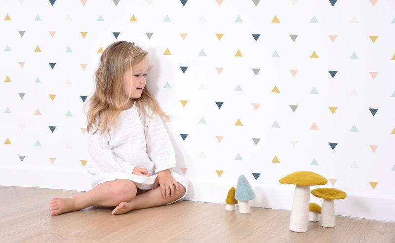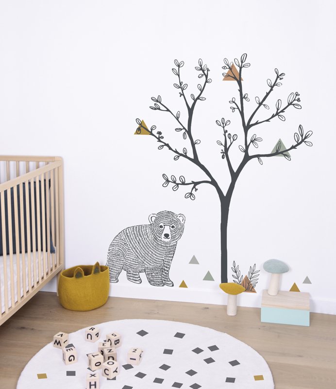 Prachtig driehoekjes behang uit de Enchanted serie van Lilipinso. Voor een prachtige rustige sfeer in de babykamer met zachte kleuren zoals oker geel, groen en zacht roze. Met slapende vosjes en een prachtige beer. Egeltjes en takken. Echt een prachtig bos kamertje voor jongens en meisjes met prachtige pen tekeneningen en moderne driehoekjes.