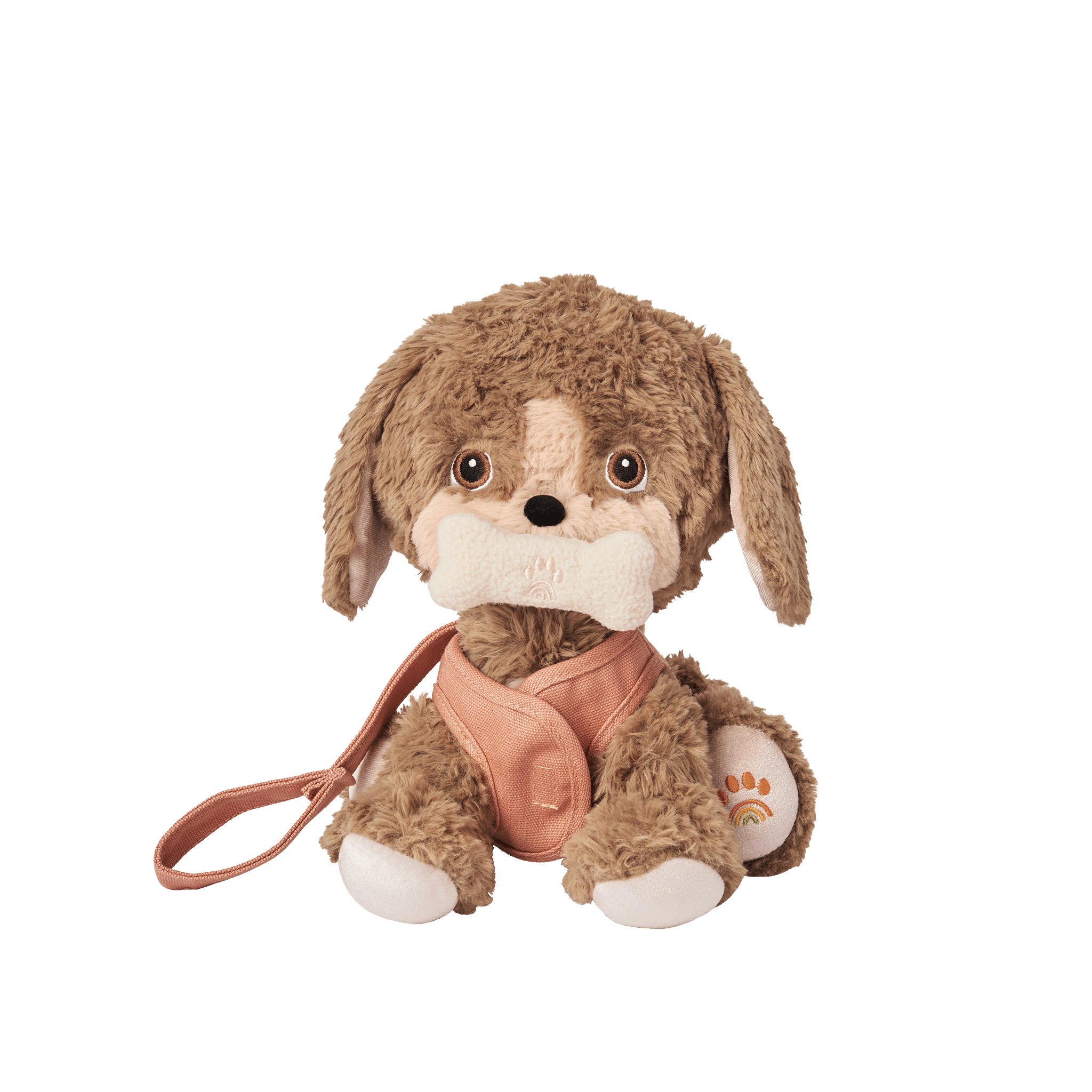 Gemaakt van zachte pluche stof die 100% gerecycled is met fluweelzachte oren om te snuffelen, Honey is volledig beweegbaar en kan staan, liggen en zelfs zitten! Honey’s hoofd beweegt en is geborduurd met het liefste hondengezicht, plus een regenboogverrassing op een van Honey’s kleine pootjes!