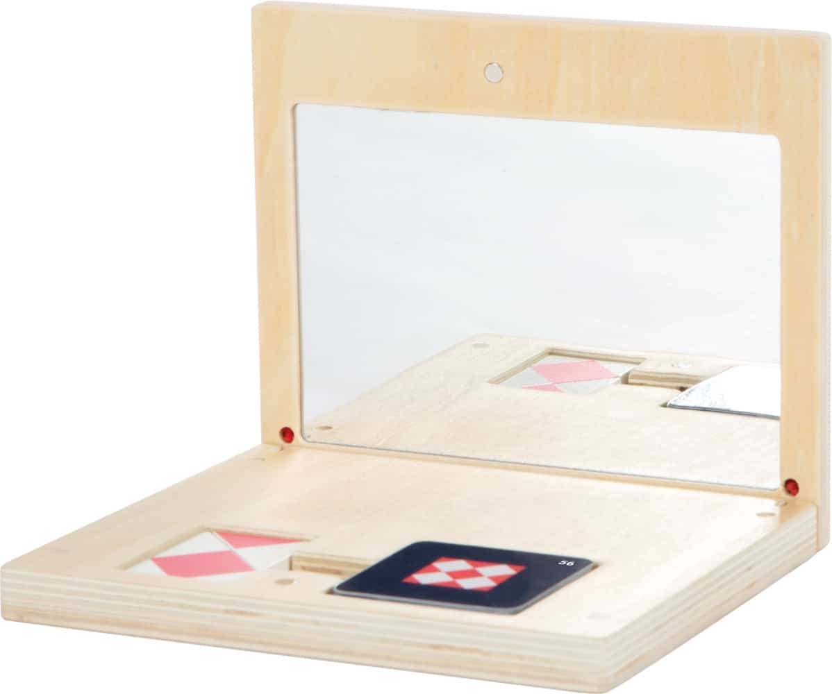 Mooie Educate Symmetrie Puzzel met Spiegel uit de Educatie collectie van Small Foot. Ontdek reflecties en symmetrie op een leuke manier! Dit fascinerende puzzelspel in een handige houten doos biedt de mogelijkheid om symmetrische figuren te verkennen en geometrische vormen te onderzoeken. Vanaf 5 jaar.